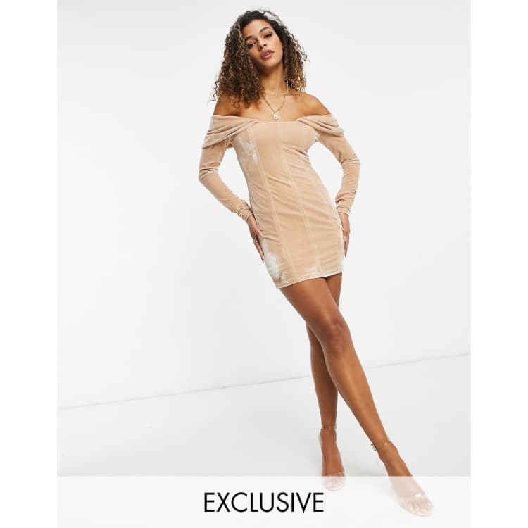 Gold metallic plisse ruched front hot sale bardot bodycon dress
