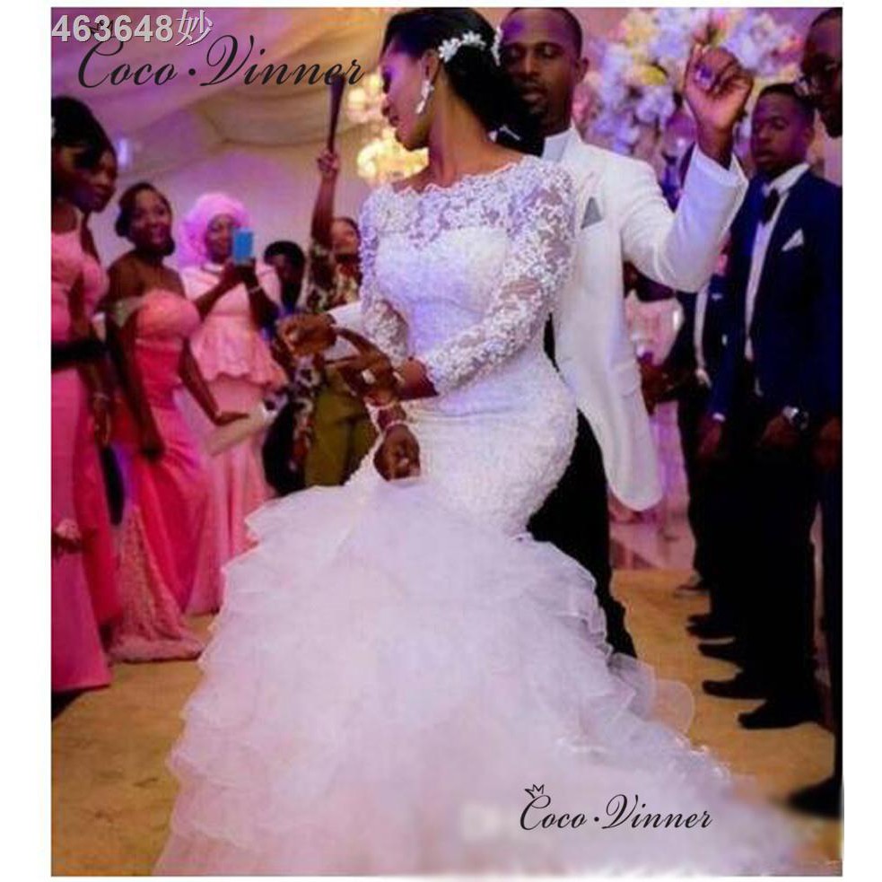 Product Item: Tiered lace mermaid wedding dress hot sale with beading