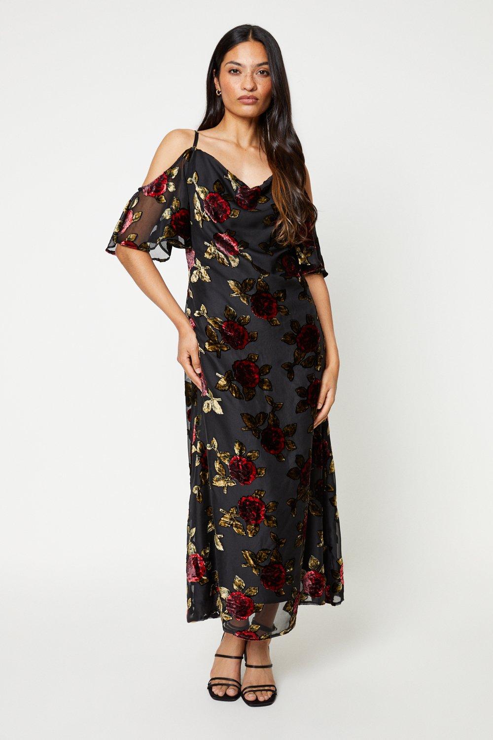 Black cold hot sale shoulder midi dress