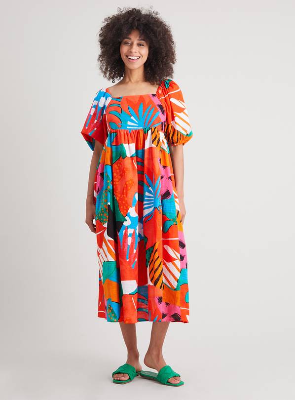 Square neck puff hot sale sleeve midi dress