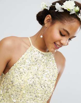 Maya halterneck delicate sequin detail hot sale tulle maxi dress in lemon