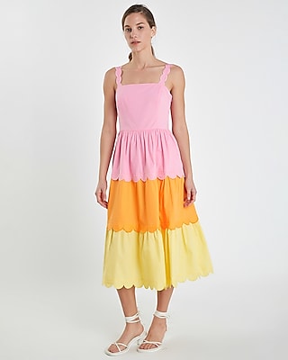 English factory hot sale colorblock midi dress