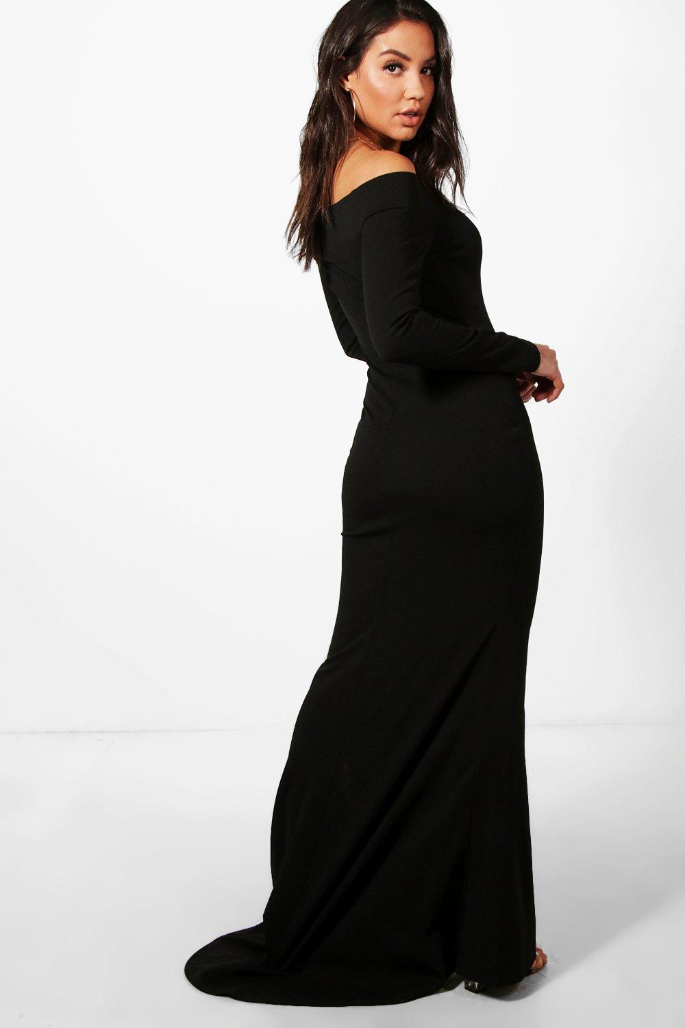 Off the shoulder hot sale black maxi dress