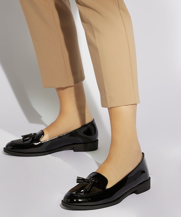 Shiny black hot sale loafers womens