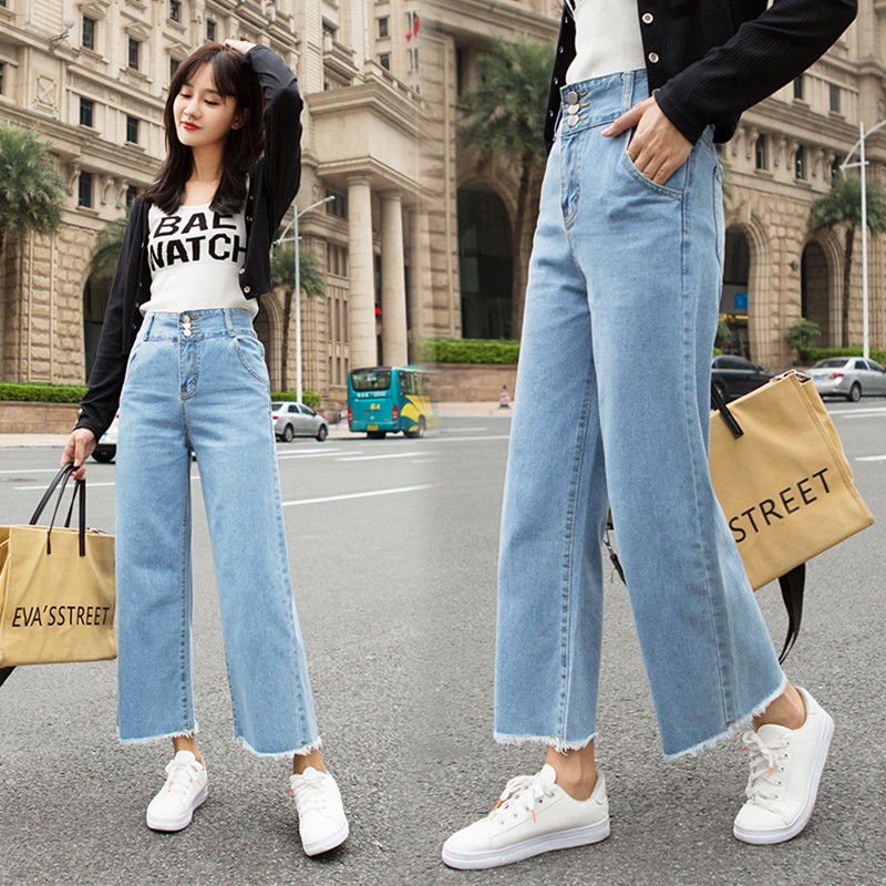 High waisted hot sale jeans korean fashion