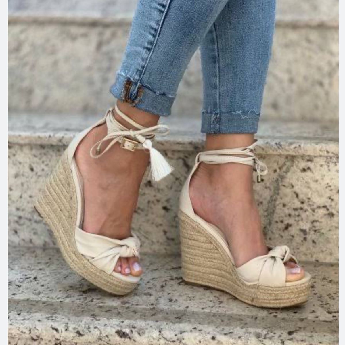 Product Item: Sandalia anabela hot sale jeans santa lolla