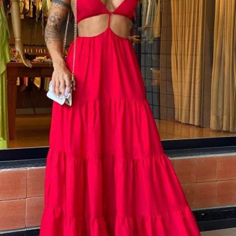 Product Item: Vestido longo hot sale vermelho para natal