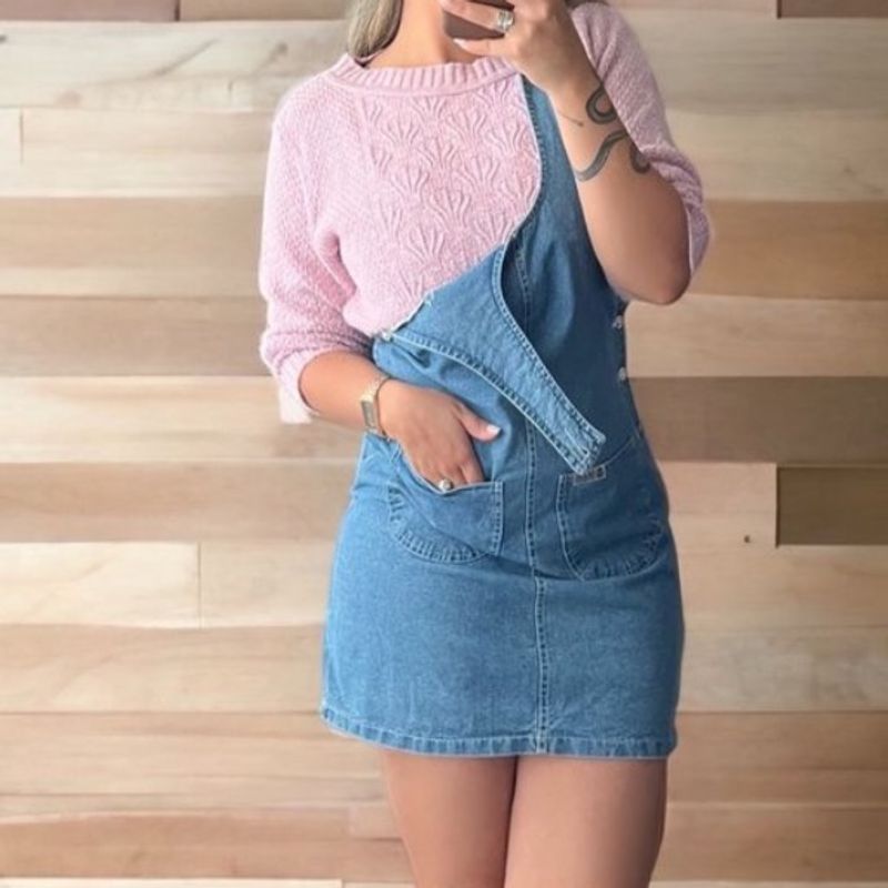 Product Item: Macacão hot sale jeans vestido