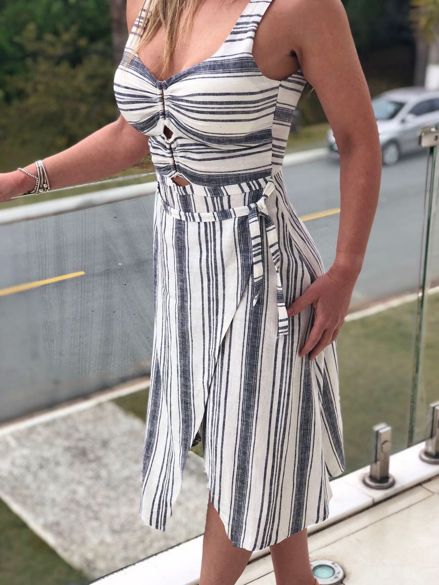 Vestido midi hot sale linho listrado