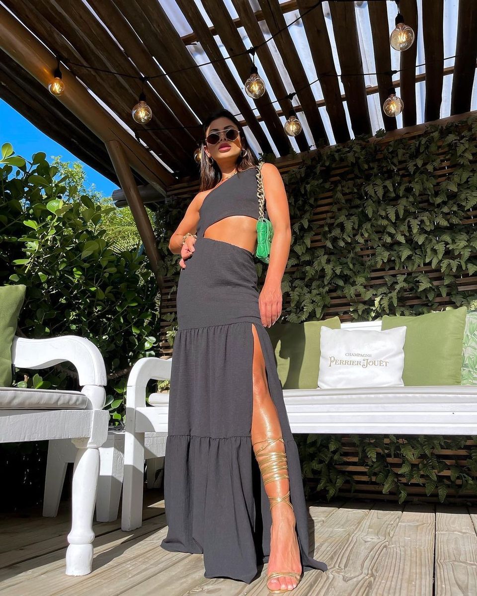 Vestido preto com hot sale abertura na perna