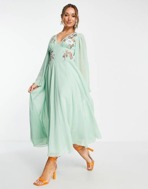 Asos green hot sale embroidered dress