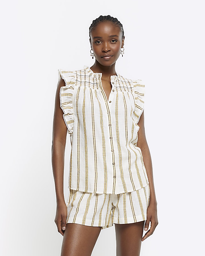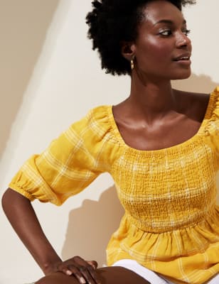 Yellow hot sale shirred top