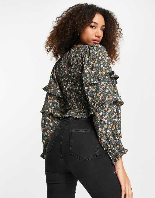 Topshop floral hot sale ruffle blouse