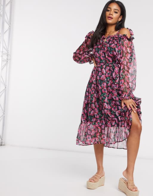 Missguided tiered one hot sale shoulder midi dress