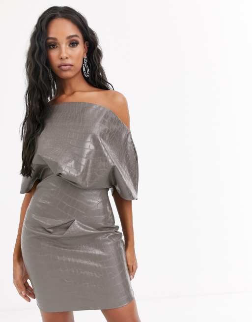 Asos design pu drape shoulder hot sale midi pencil dress
