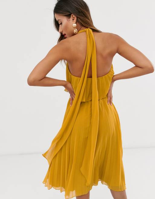 Asos design halter tie hot sale neck midi dress in pleat