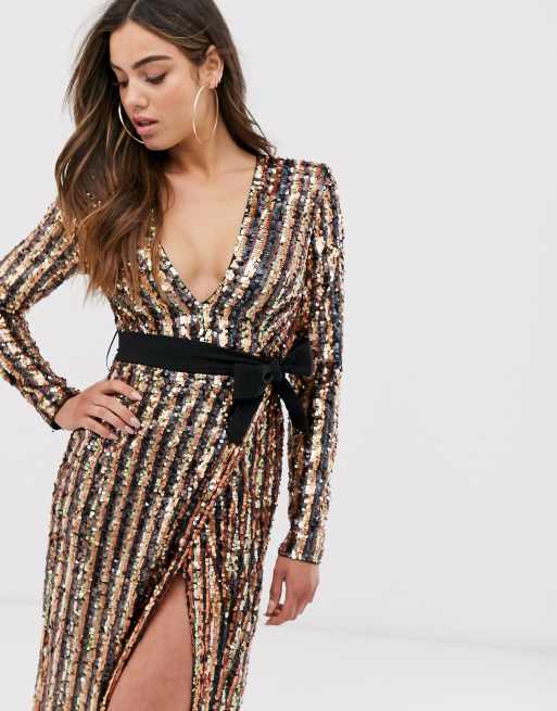 Product Item: Club l wrap striped sequin hot sale mini dress