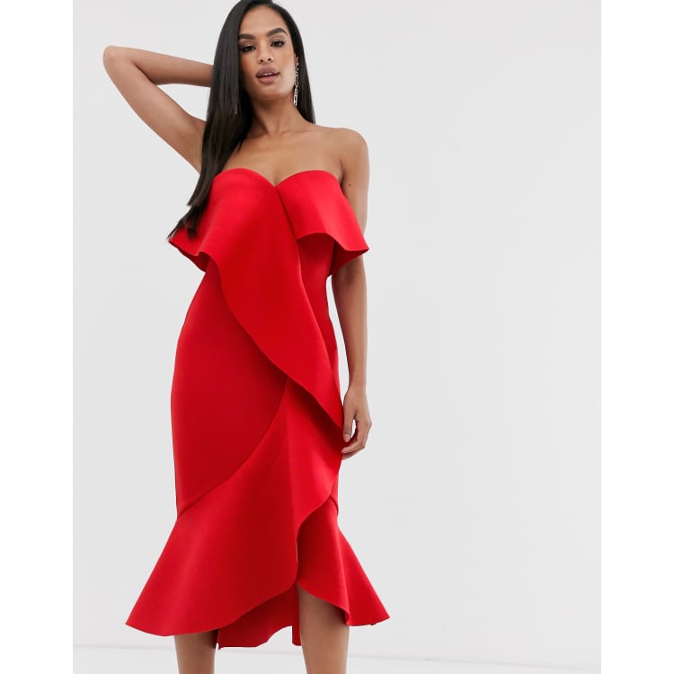 Bandeau frill hot sale midi dress