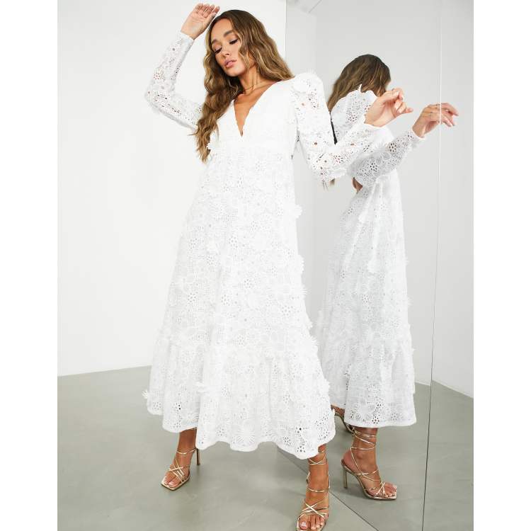 White 3d hot sale flower dress