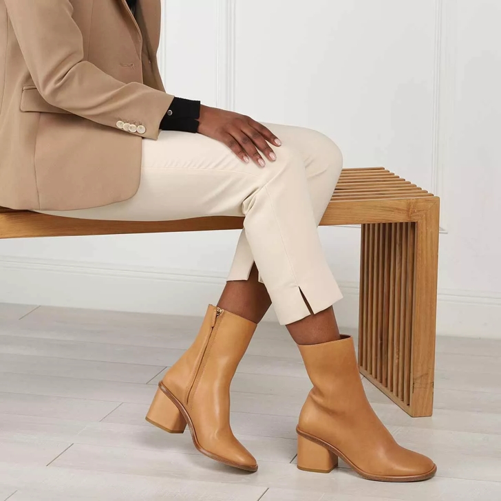 Leather block hot sale heel ankle boots
