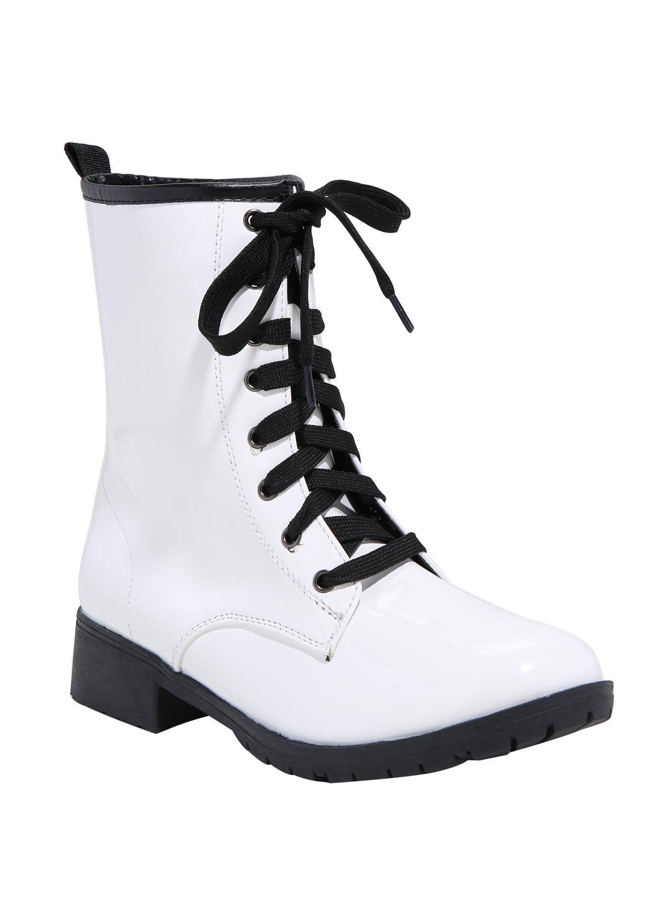 White patent hot sale leather combat boots