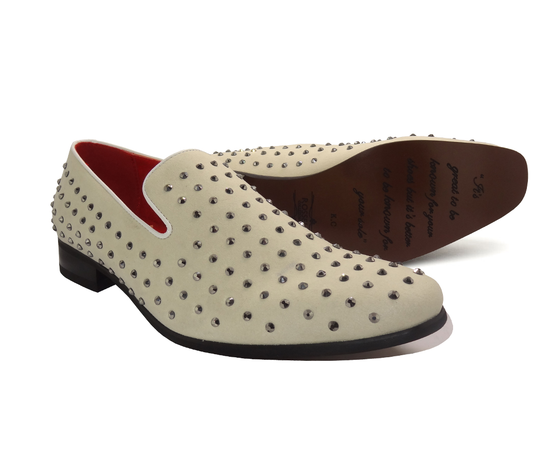 Product Item: Mens white hot sale spiked loafers