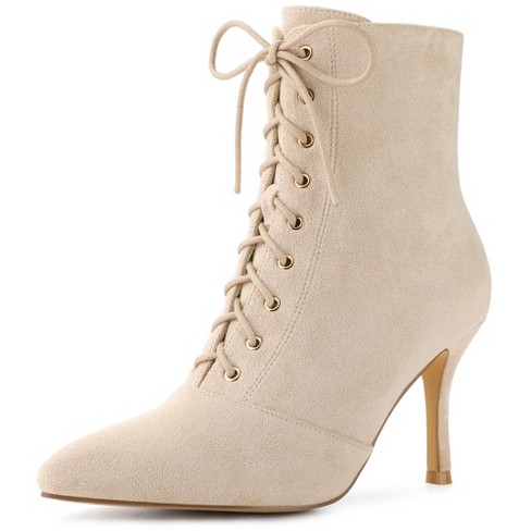 Tan lace hot sale up heel boots