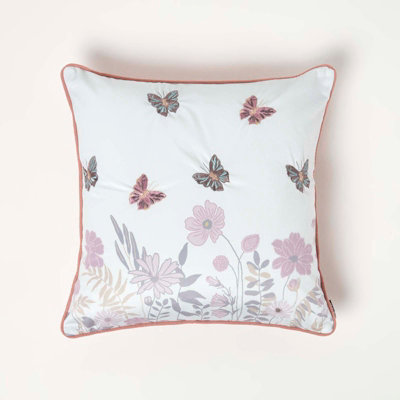 Pink hot sale embroidered cushion