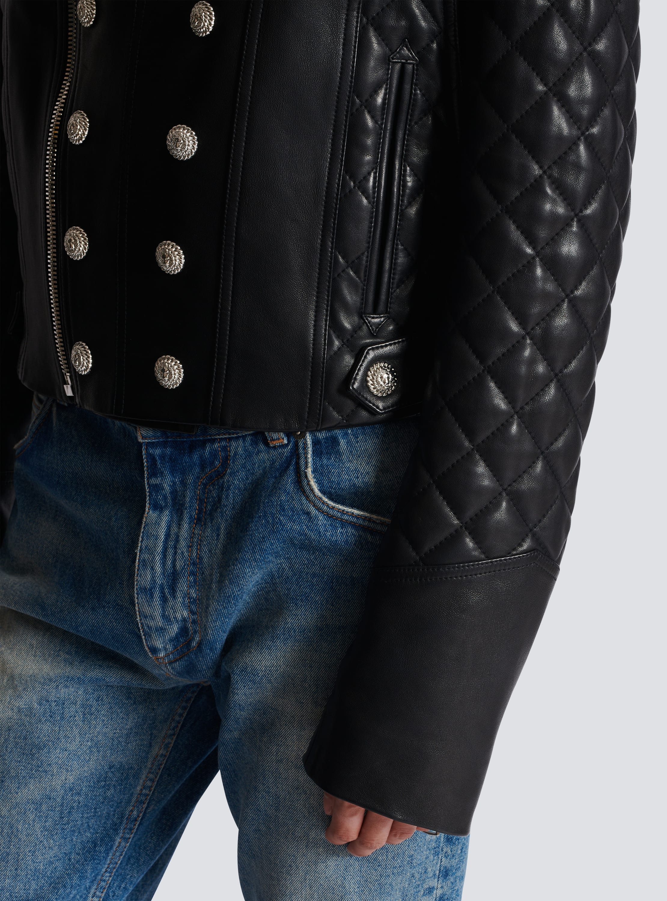 Product Item: Balmain down hot sale biker jacket