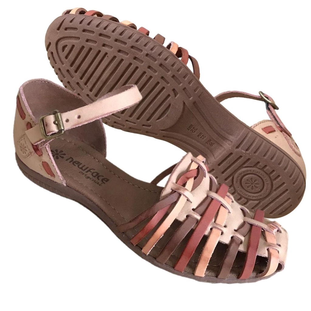 Product Item: Sandalia rasteira feminina couro new hot sale face tiras coloridas