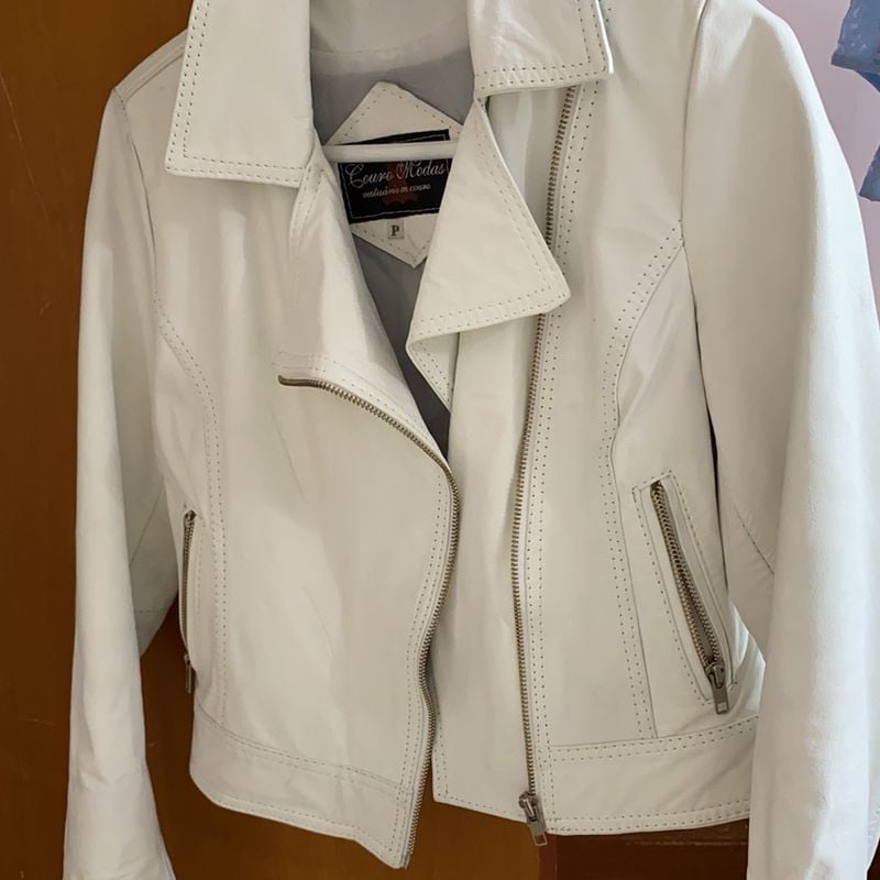 Product Item: Jaqueta couro hot sale branca feminina