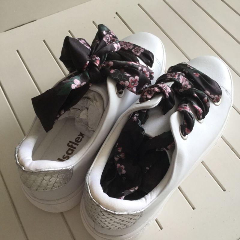 Tenis branco com hot sale cadarço de cetim