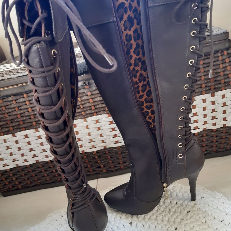 Bota cano longo hot sale com cadarço atras