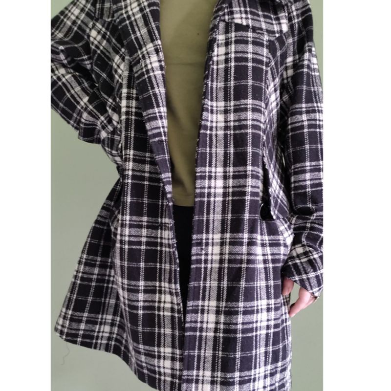Product Item: Sobretudo hot sale xadrez feminino