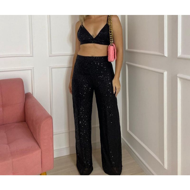 Product Item: Calça preta hot sale com lantejoulas