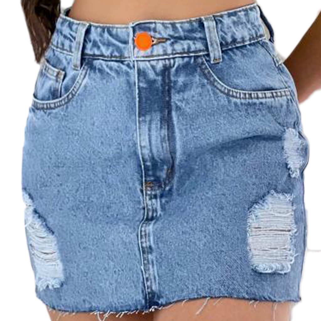 Product Item: Saia jeans hot sale curta rasgada