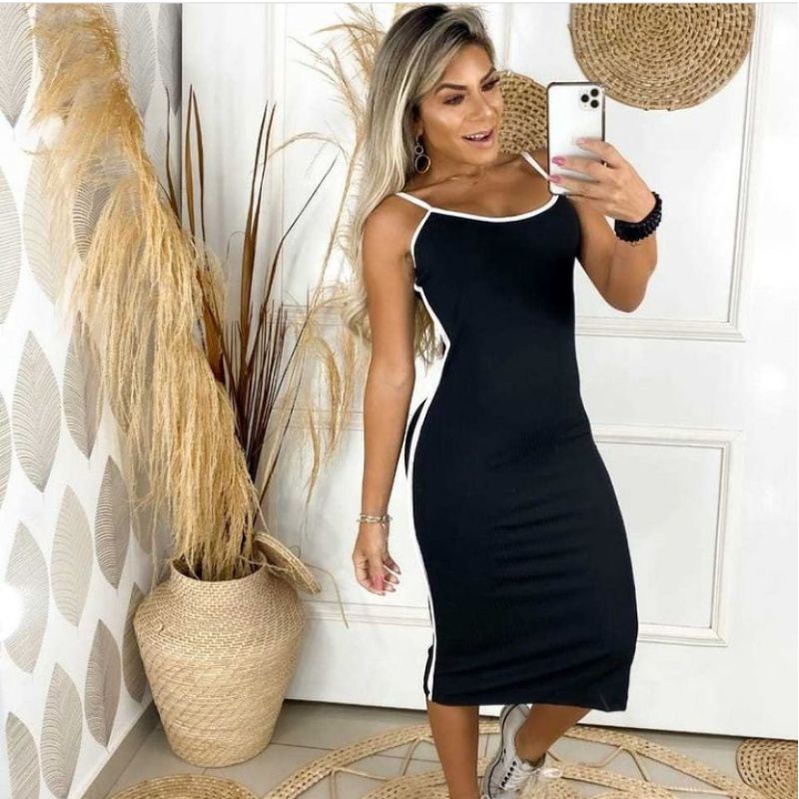 Vestido midi hot sale preto canelado