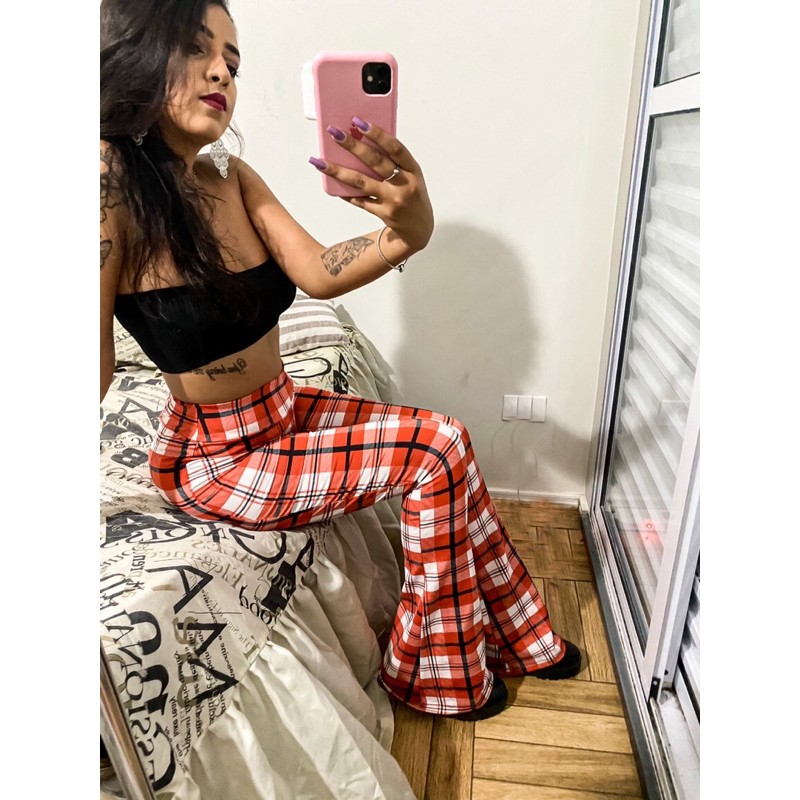 Product Item: Calca hot sale flare xadrez
