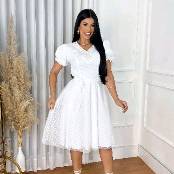 Product Item: Vestido branco hot sale bordado com perola