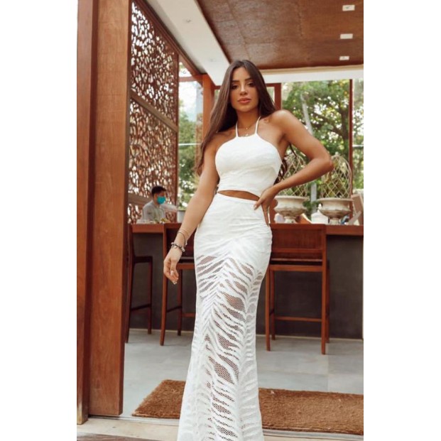 Product Item: Vestido rendado hot sale branco longo