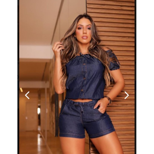 Product Item: Conjunto short jeans hot sale e blusa feminino