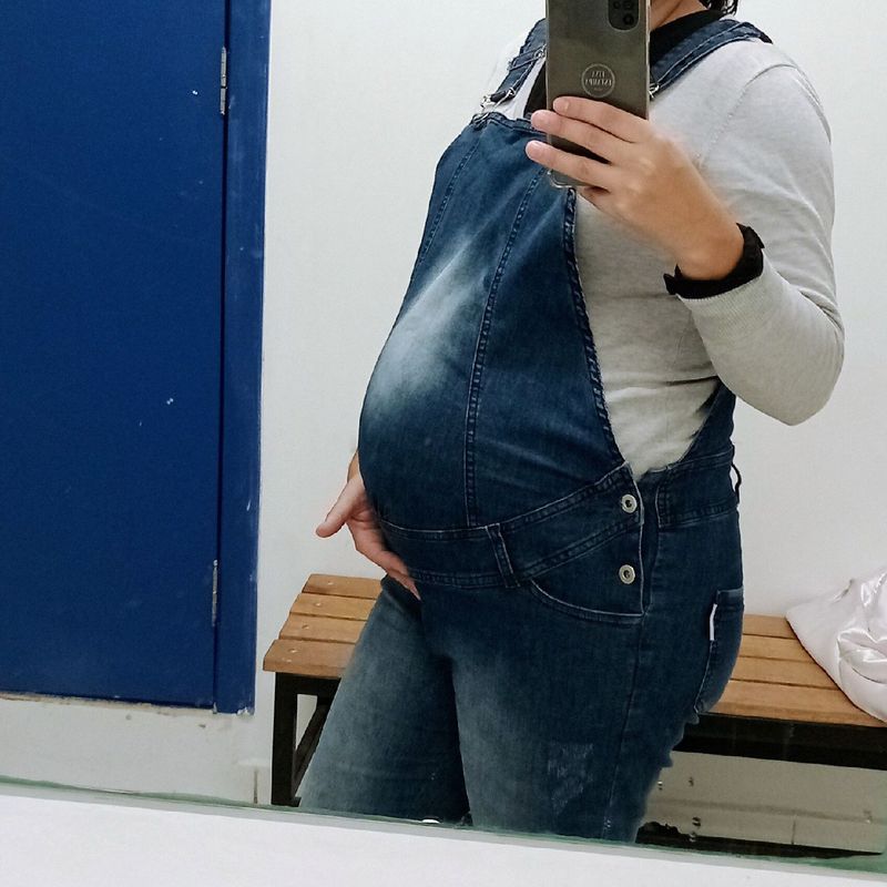 Product Item: Macacão jeans hot sale feminino gestante