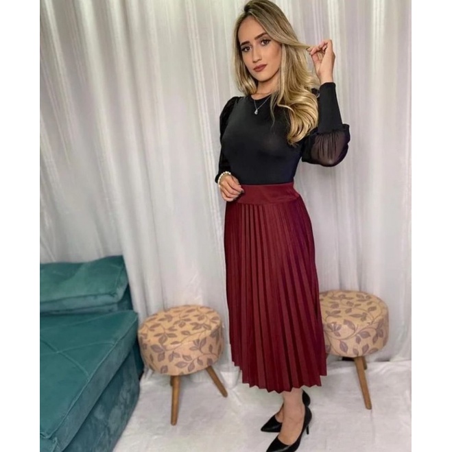Saia plissada hot sale midi com body