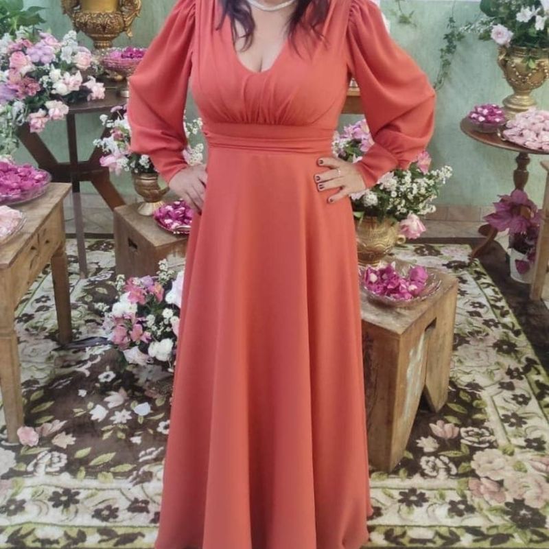 Product Item: Vestido cor hot sale goiaba para madrinha