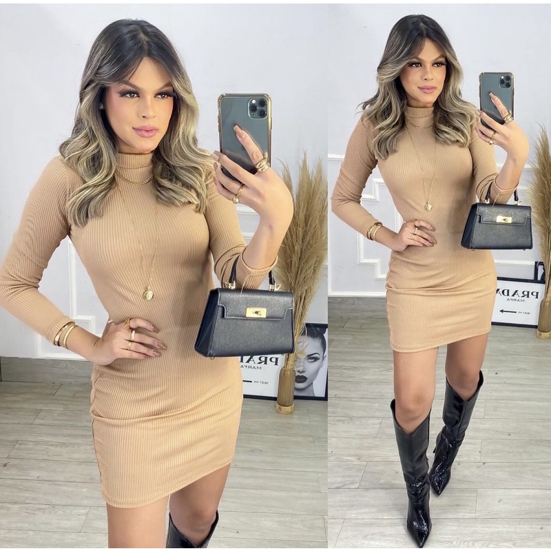 Vestido hot sale bege colado