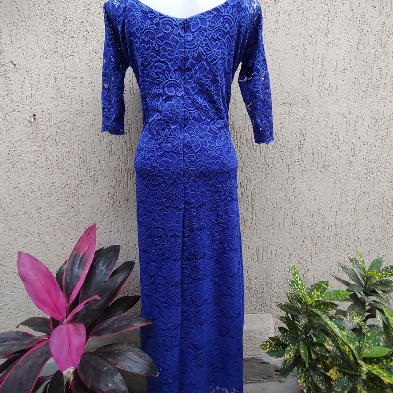 Product Item: Vestido azul royal com manga hot sale de renda