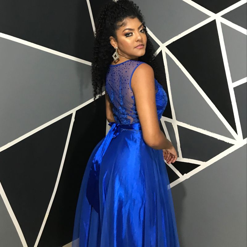 Vestido azul com hot sale tule e renda