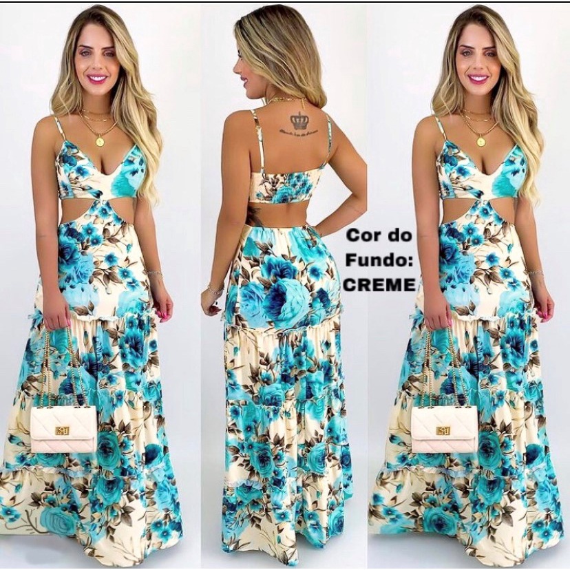 Product Item: Vestido longo florido hot sale aberto na perna