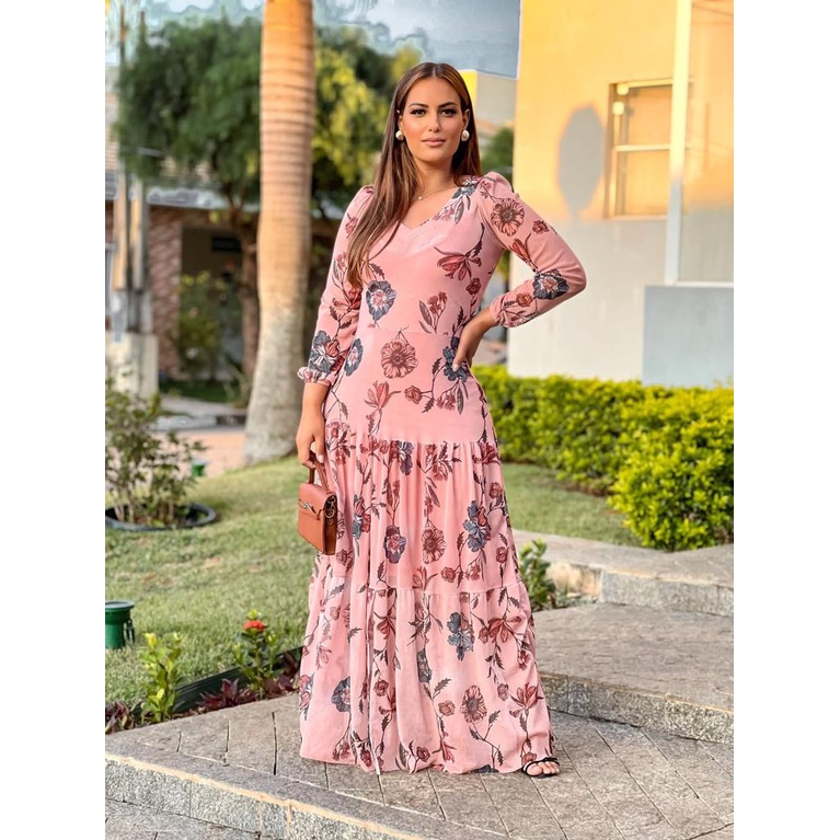 Product Item: Vestido longo hot sale tule estampado