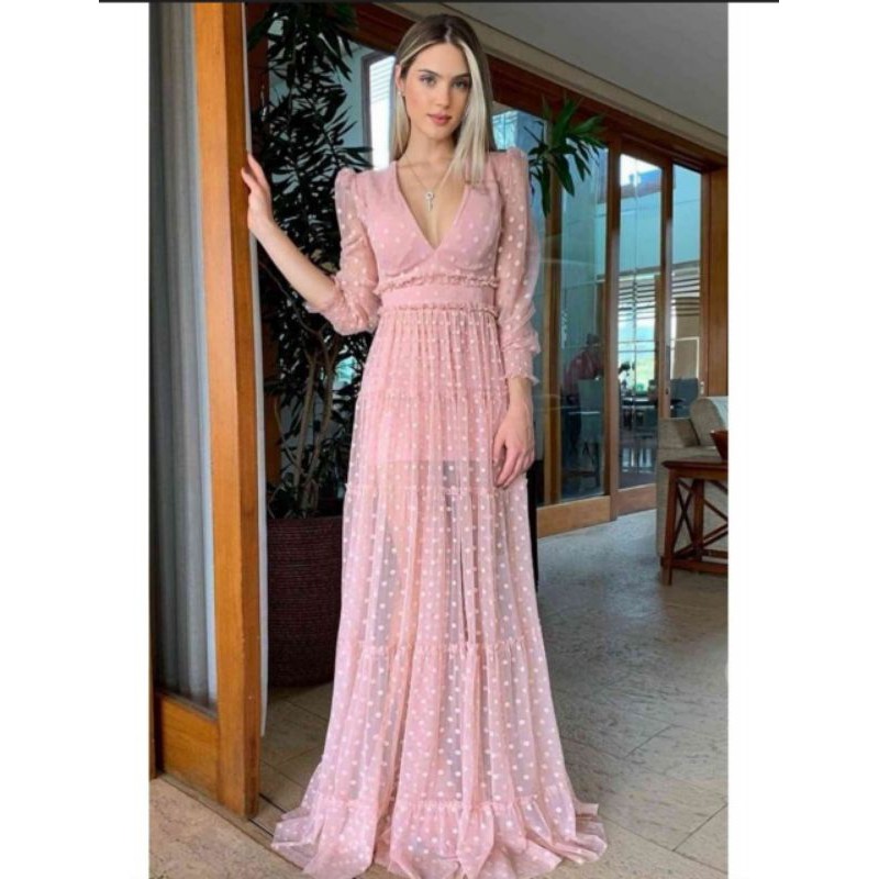 Vestido de renda com manga hot sale de tule